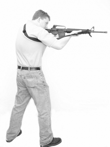 This Redi-Mag two point sling is a high-low system that can go from high and tight carry to low and loose in an instant. Even with heavy gloves, a quick flip of the locking plate (which is designed to resist accidental release) gives immediate slack that is enough for going prone, clearing a weapon malfunction, quickly removing your weapon, or changing your aiming from strong side to weak side. High and tight carry is almost as easily and quickly restored just by sliding the locking plate back to the front of the sling. This patented system has been in wide use for over two years with absolutely no known failures.