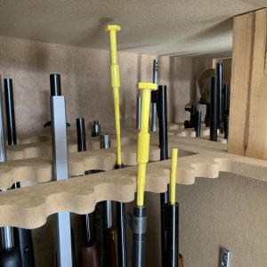 The Short Bore Extender Protector is a simple yet innovative way to keep the short guns safely on the rack or in a gun safe, preventing them from sliding off or leaning onto other firearms. They are easy to trim and use the pieces in a variety of lengths and in different caliber bores. Great as a safety device keeping rust causing dust or debris out of your bore. Made of flexible yet strong bright yellow plastic nylon, measuring 10″ in length.